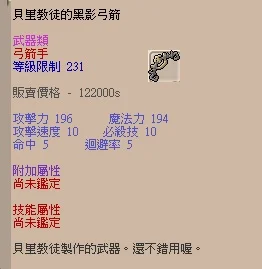 貝里教徒的黑影弓箭N+0 =400T/把未鑑【弓箭手】