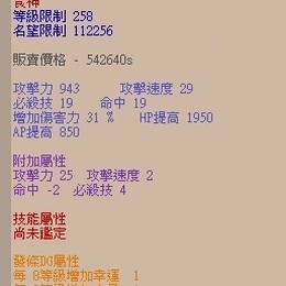 每 8等級增加幸運 1 每 8等級增加力量 1 每 10等級增加力量 1