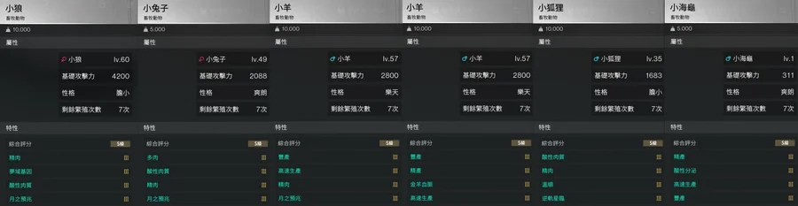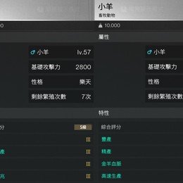 精肉3/高速3/豐產3/月兆3:生產月兆羊皮(想宰殺時有精品羊肉)