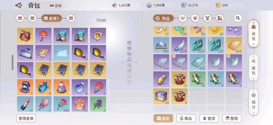 背包內存大量資源供戰力提升