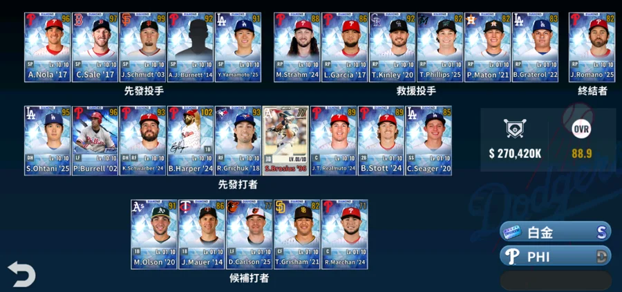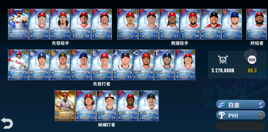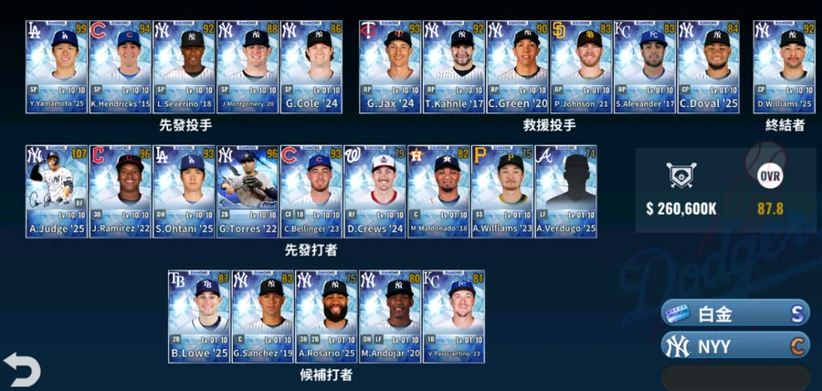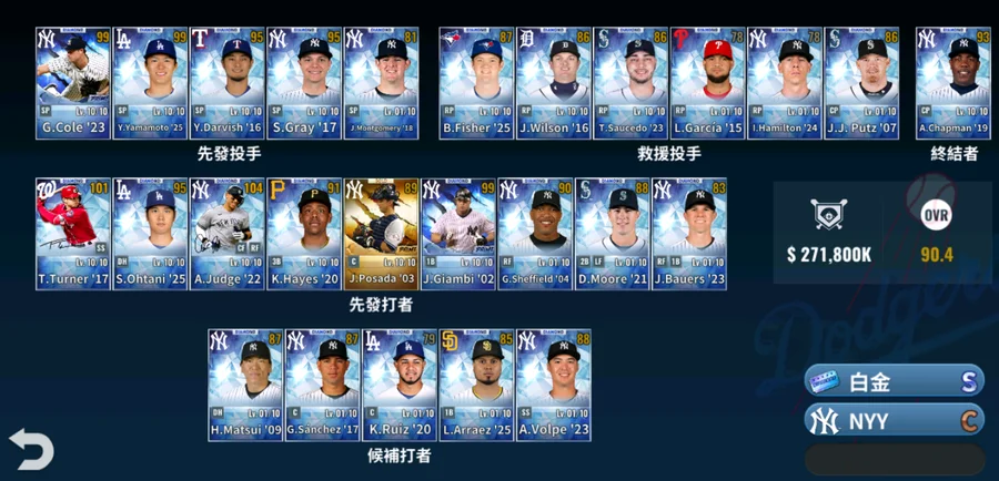 白金頂簽洋基法官22年基礎74 力量90+國民Trea Turner17白金簽基礎70 212$