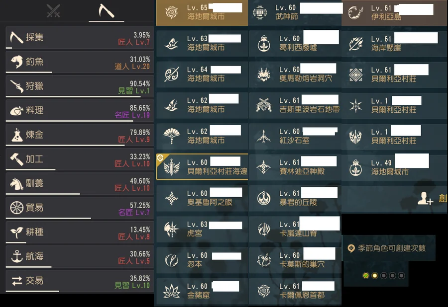 已創26隻角色(還有角色欄位可用) 還可創2隻季節角