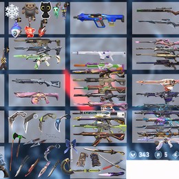 刀:金箍棒/奇點蝴蝶刀/起源半月刃/鬼丸國綱/掠奪爪刀/黑市蝴蝶刀/黑波/奧數拳套/仙女棒/緋金小刀/離子爪刀/邊陲戰斧/蓮花小刀/2024冠軍直刀/RGX蝴蝶刀/RGX爪刀/異星獵人小刀/極簡爪刀/2025VCT爪刀