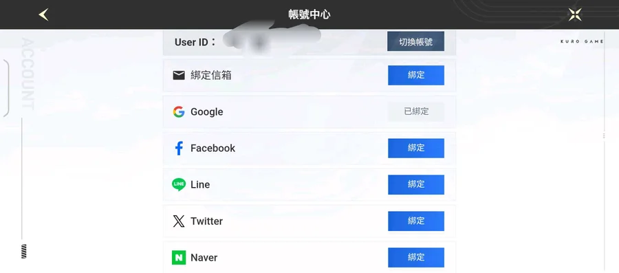 綁定內容如圖 只綁了谷歌一個