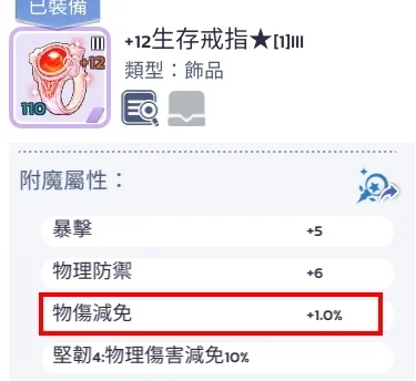 小條屬性大部分都洗到物傷減免、還有全洗滿的~
