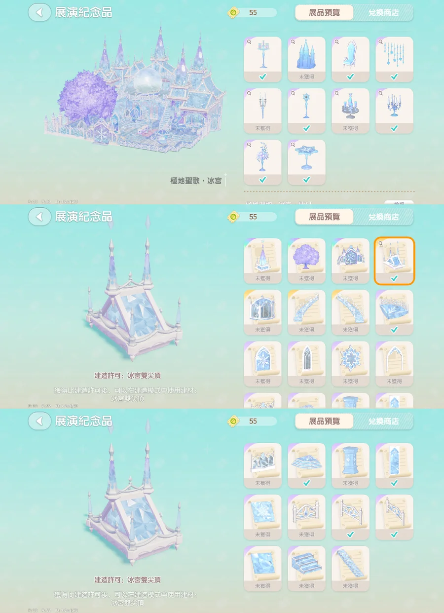 建材獎池15抽,有金屋頂、露台、扇形樓梯、牆壁、柵欄多建材。