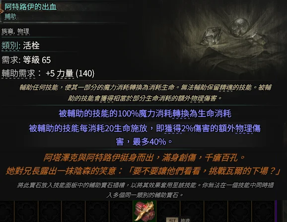 【輔助寶石】阿特路伊的出血 消耗生命提升傷害