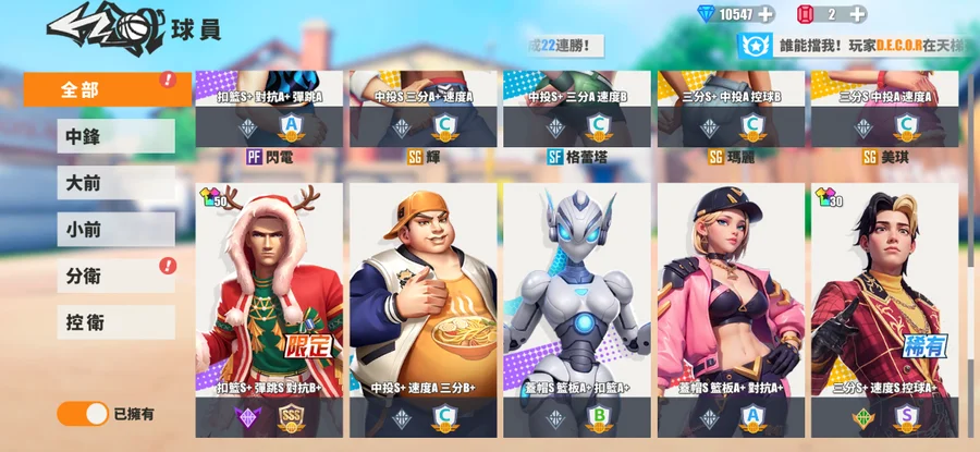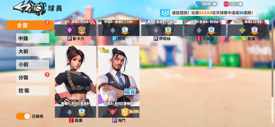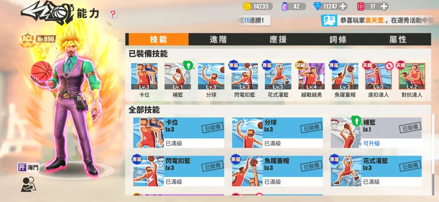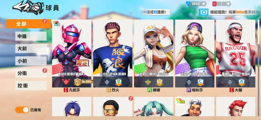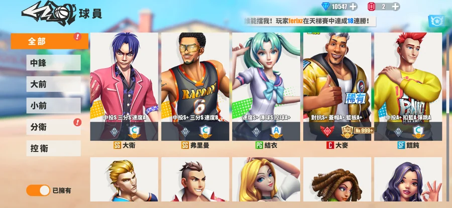 T0.5中鋒 跟其他角色也都有慢慢可以培養上場