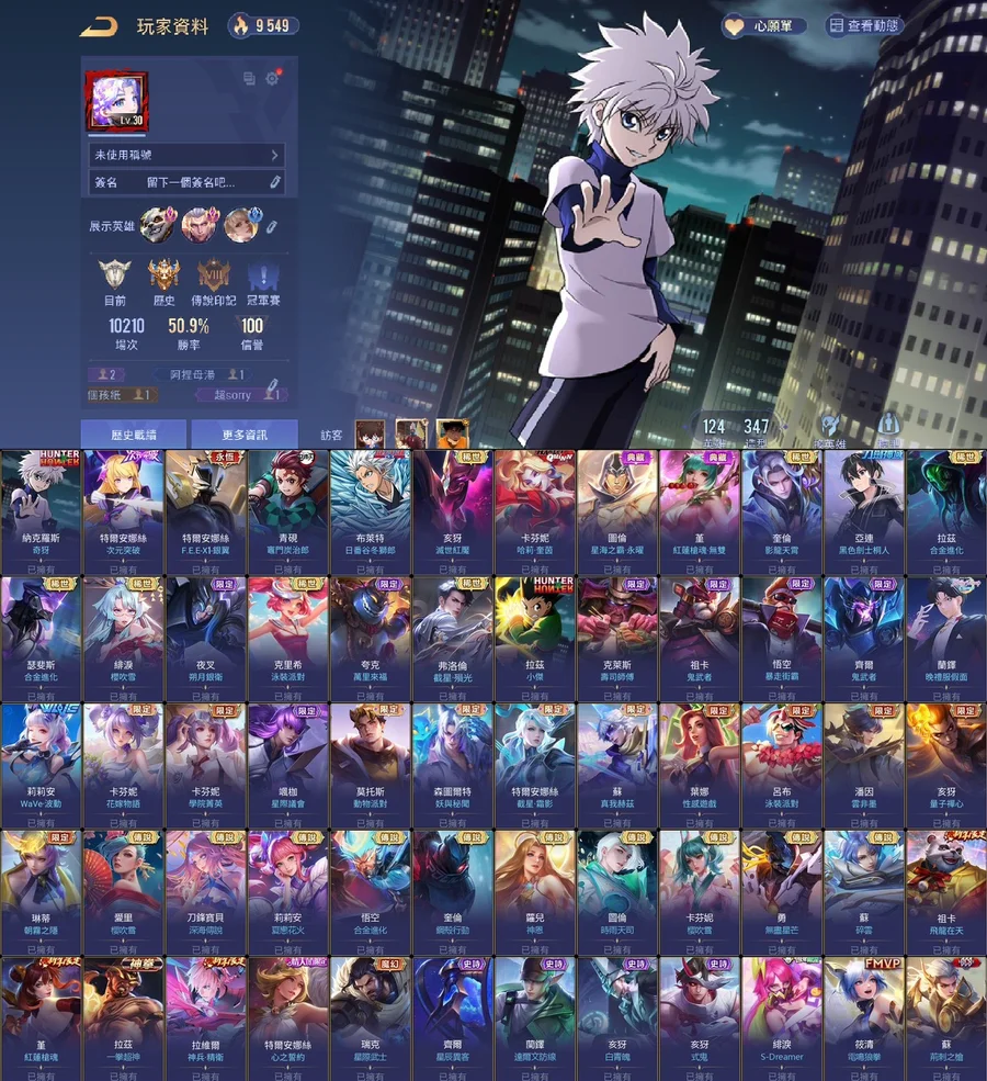 多課金抽獎造型!近全英雄近三百造型!課金神帳!共124英雄347造型!勝率近51%!!共8次S戰場傳說印記!常用奧義已升滿!!