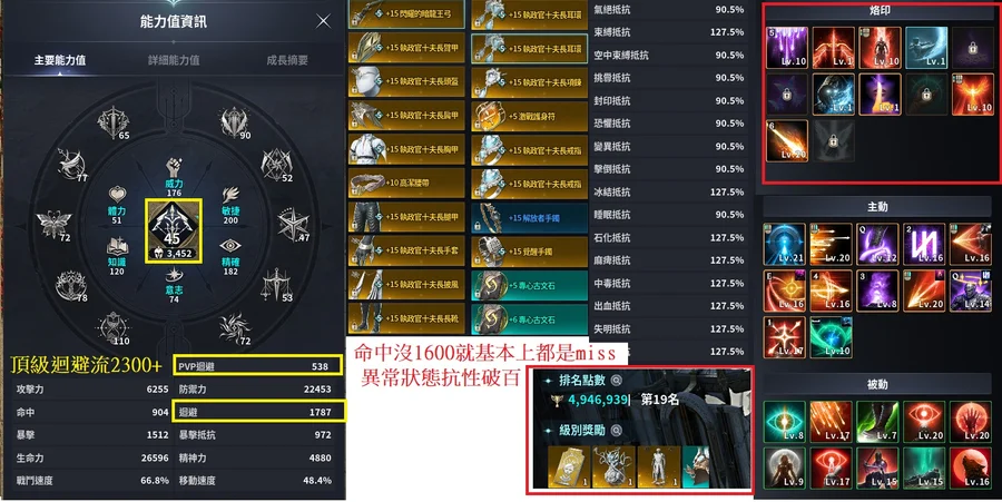 PVP迴避達到 23XX 基本命中沒1600 都是狂miss