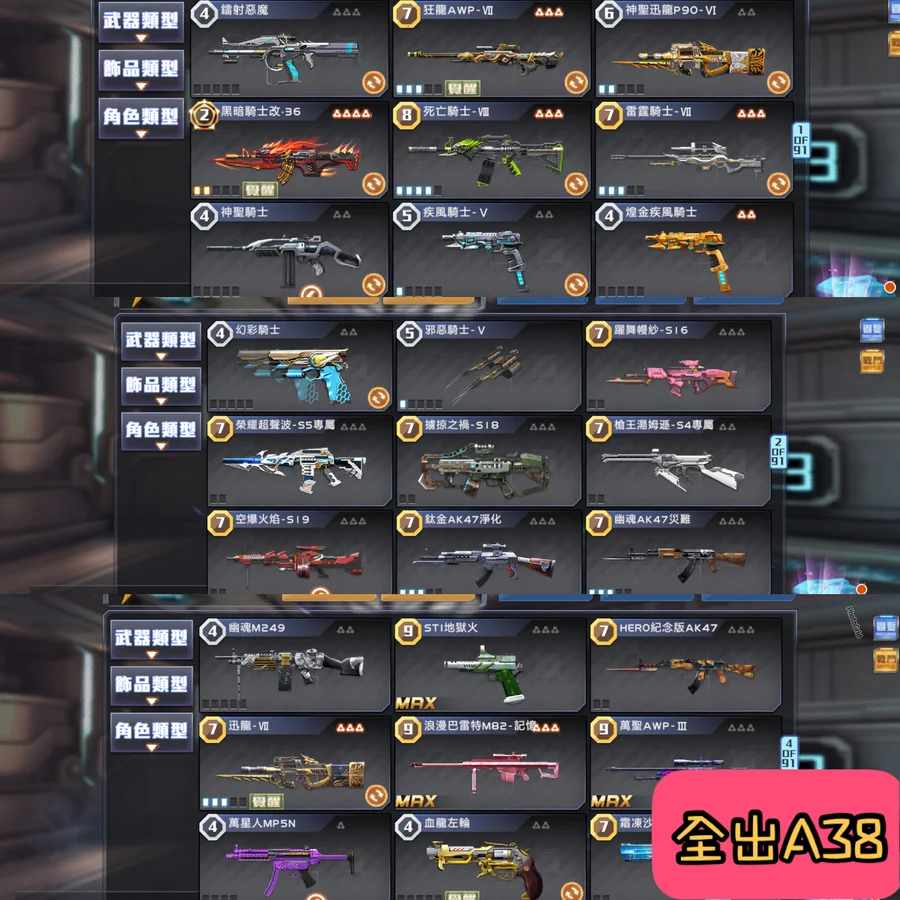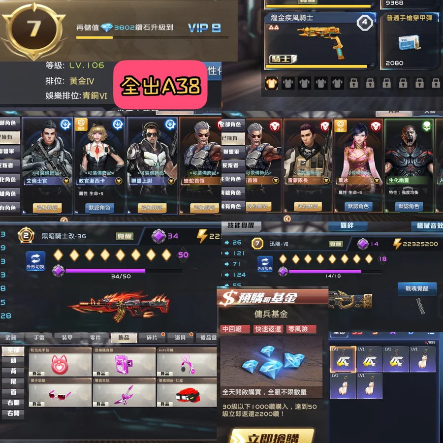 【106等】全出A38 V7 黑36快37死8狂7雷7迅7如圖