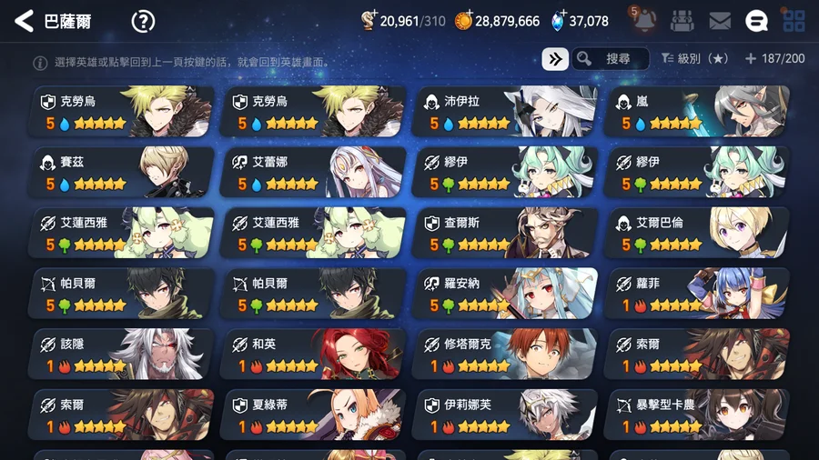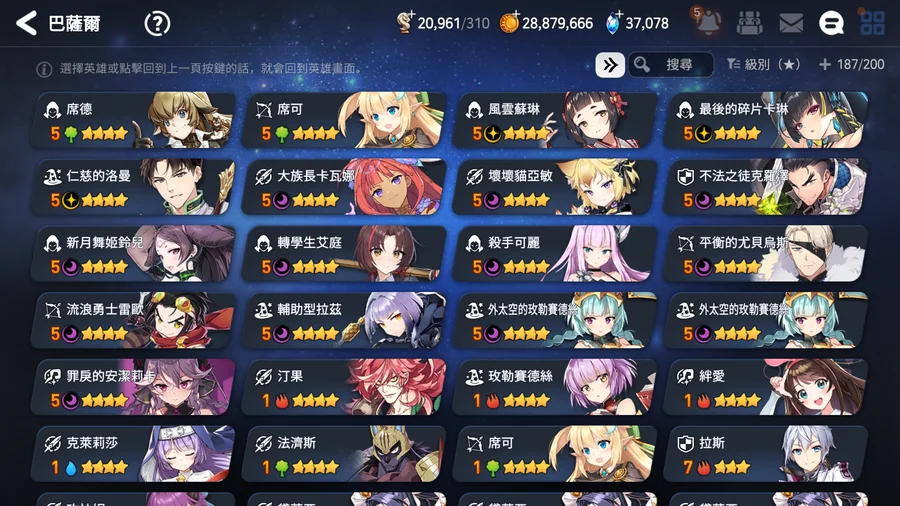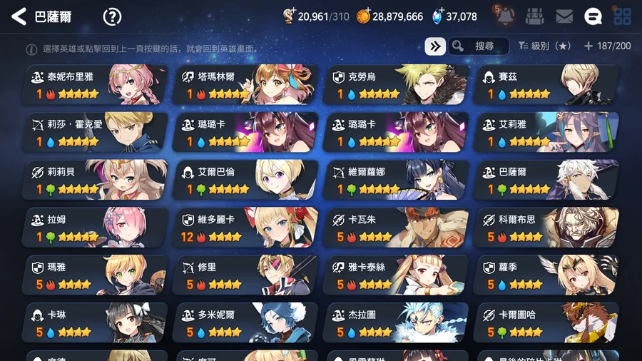 ▶適合新手、中手、小號,有完美開局多隻TOP光暗五星,不是資源玩爛的帳號,培養都往正確方向,多書籤跟天空石讓接下來抽合作角色都不是問題