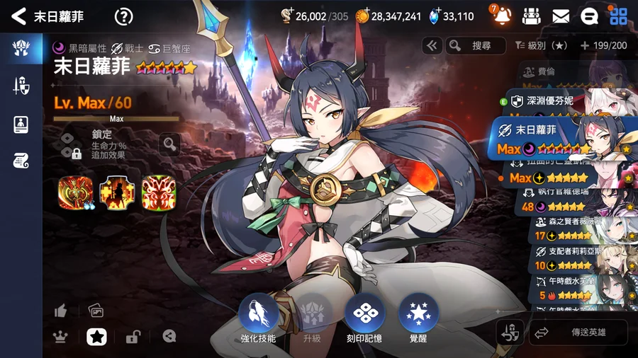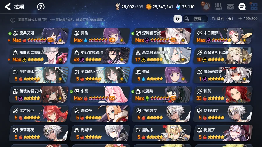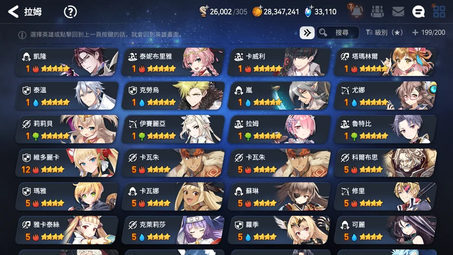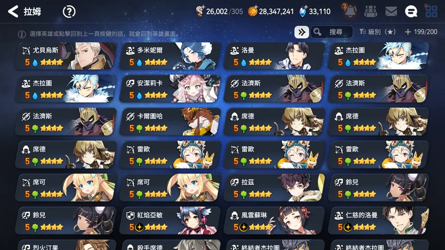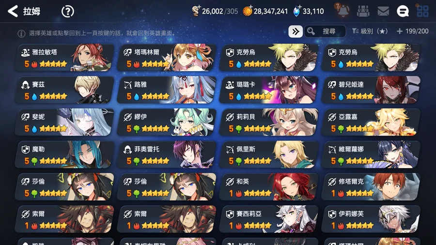 ▶適合新手、中手、小號,有完美開局多隻TOP光暗五星,不是資源玩爛的帳號,培養都往正確方向,多書籤跟天空石讓接下來抽合作角色都不是問題