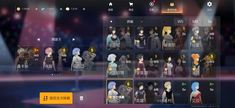 角色好用 盧卡斯+1 零+2 尚賢+3 泳裝戴夫 泳裝徐沙拉 舉球頂 該有的都有 中間手頂 攻擊手夠用