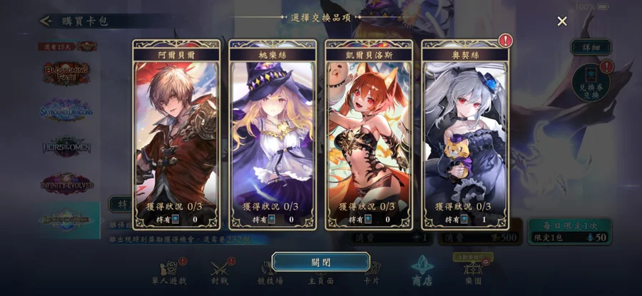 除了阿烏拉是送的以外,其餘皆為兌換券形式,可自行選擇兌換主戰者或背景+卡片風格或Q版小人。