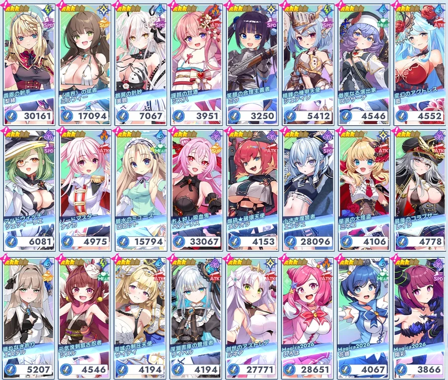 以上都是長期存的各種資源,還有技能書槌子之類的升級素材,可直接升滿想要練的角色或隊伍。
