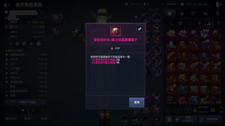 ●這裡提供多資源並儘量保留部分彈性避免不必要花費、遊戲樂趣~可參與絕大多數活動/遊戲機制的戰力門檻!! 帳號花長時間累積至少1年以上資源構成^^_2022年8月至今幾乎所有特殊活動或序號虛寶皆有領取,比如特殊寵或頂數值道具等...(目前裝備的構成需消耗~數百顆以上 鑽石&阿克拉德、數萬以上次元碎片、數百顆以上空虛之眼、數百顆以上弘益的火花、數萬以上影子結、數兆以上銀幣或上百萬張突破復原券,上述也是主要材料~ ),資源多,戰力好升!! 目前遊戲中多數提升戰力的資源已改為可交易,可透過交易所花費銀幣購得/利於新手追進度!! ~ 隨點即拿不需等候的戰力取得空間多,部分一次性獎勵未領。在此戰力階段,仍可短時間提升數千戰力...(儘量保留遊戲樂趣且有資源可玩→高成長效率,以花費的時間及精力來說,不錯的CP值! 按表操課,戰力皆可顯著提升~但建議享受遊戲樂趣勝於追戰力,資源建議留到後期再做分配在戰力提升會更有效率,將不易陷入資源不足而卡戰難升冏境!)