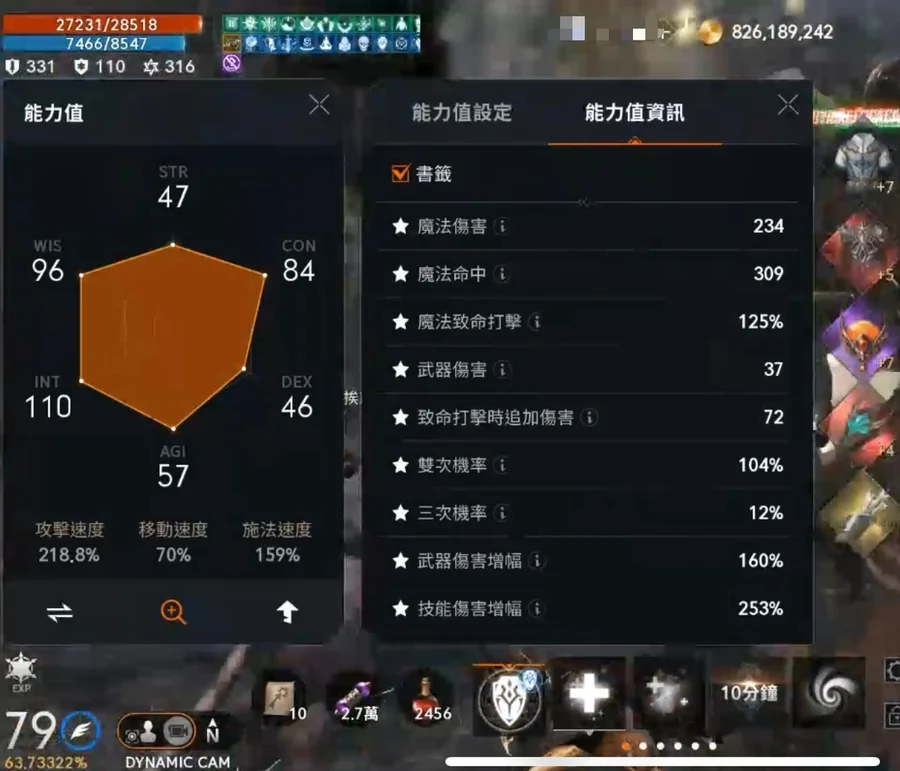 五圍(吃商店)傷害:234、命中:309、防禦:231、減緩:110、技抗:316