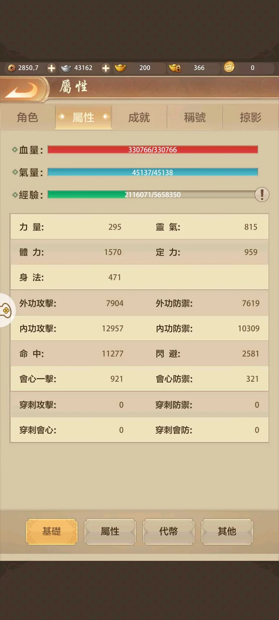 【69等】職業:男峨眉、 伺服器:煙雨平生 、 有儲值:至尊游龍卡、成長。