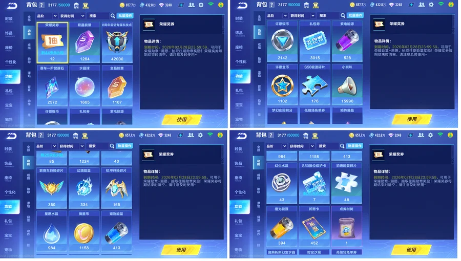 還有一些 機甲源石,幻境能量,金晶能量, 水晶球, 套裝等等.....