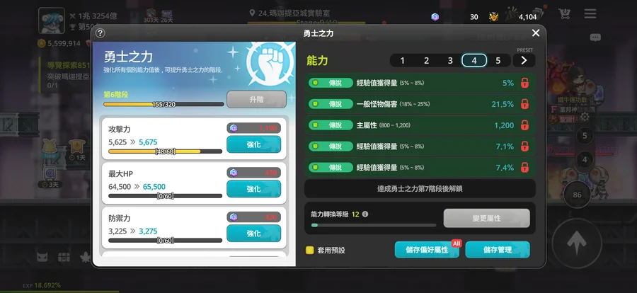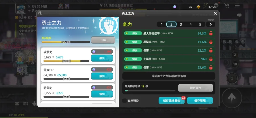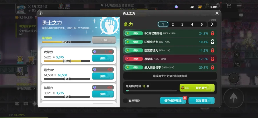 勇士之力:6階 一頁傳說打王 一頁通關全傳說傷害+爆擊、一頁傳說掛機3條經驗
