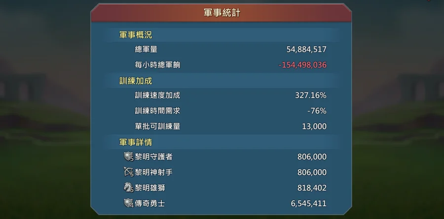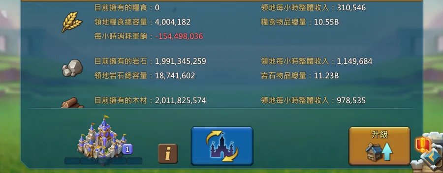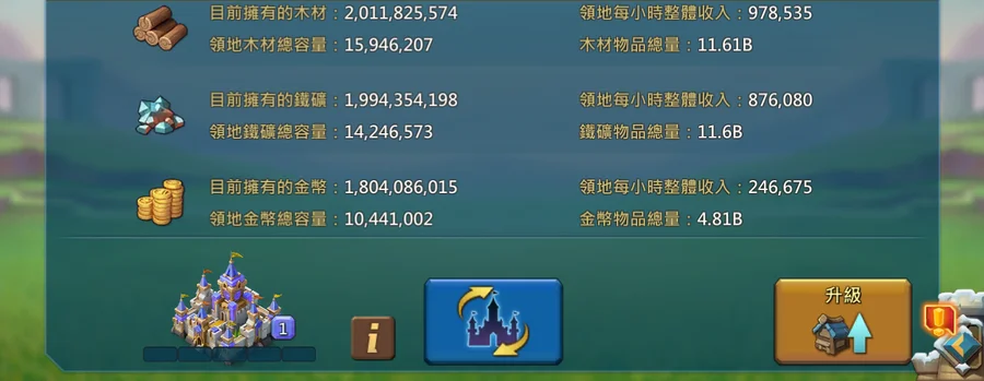 ☆背包資源:糧10B、石11B、木11B、鐵11B、金4.8B