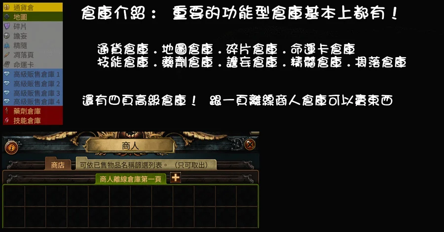 重要的功能型倉庫基本都有! (缺好用的傳奇倉庫 )