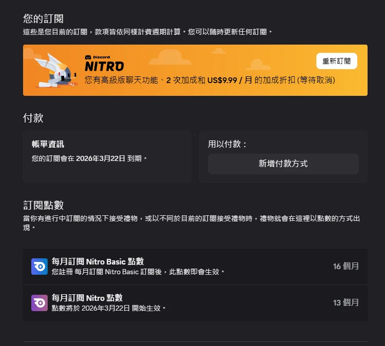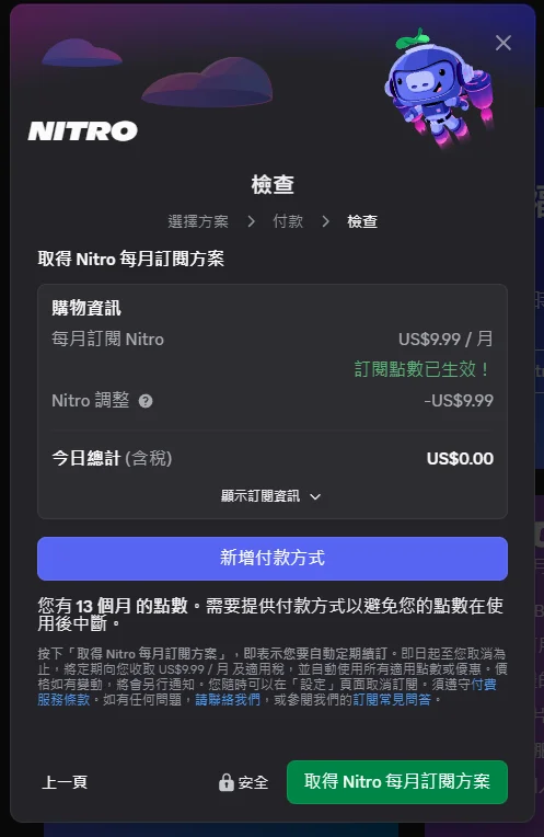 目前無訂閱, 可透過點數免費下單Nitro見圖片