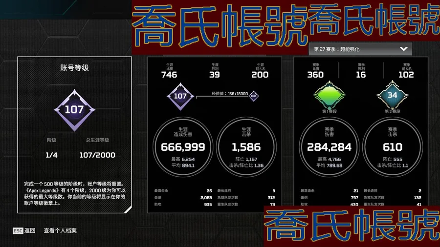 【OBAUTTX103042】白金,107級 1傳家寶 63金, 1200金幣,賽季滿級:S26下半賽季,S27上半賽季;傳家寶:通用-絕命二重奏,不是黑金號