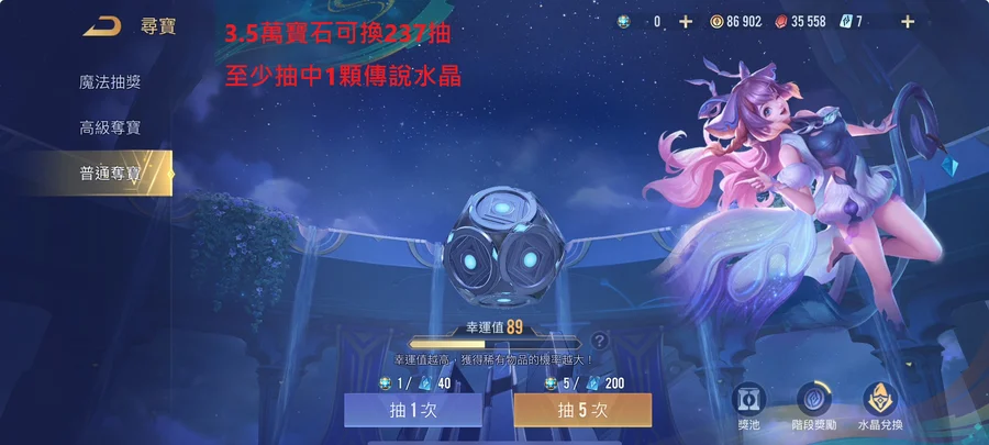目前奪寶積分89,夠保底傳說水晶(抽中可換海倫)