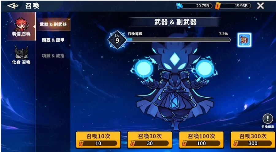 鑽石 + 綠寶石 + 免費積分 + 付費積分 + 武器召喚卷 + 防具召喚卷 + 飾品召喚卷 + 4 種職業技能書 + 4 種職業經驗石 + 3 種強化石 + 3 種精煉石
