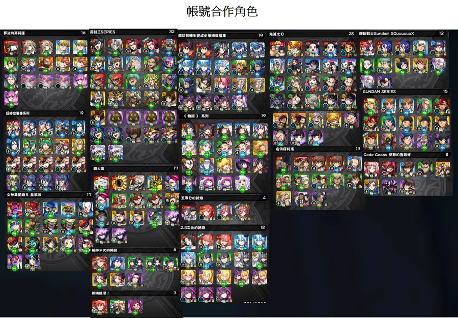 1-合作角色已經全展示(包含非轉蛋角色)。