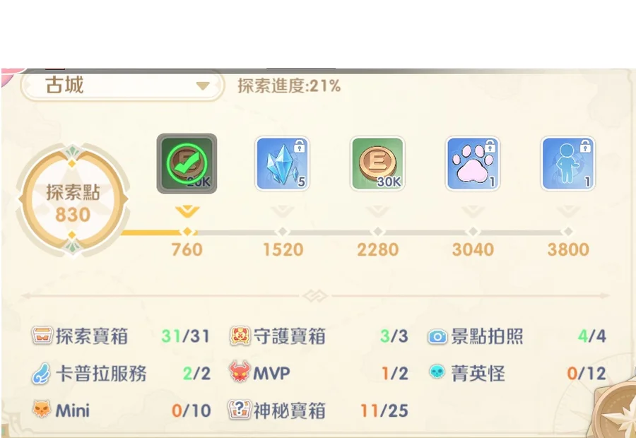 3/27新增古城,單跑古城150 只含探索、守護、景點、傳點、蝴蝶陽光