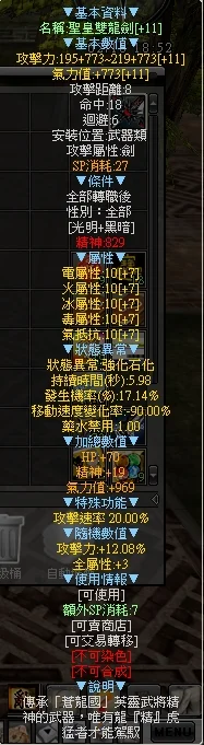 賣 +11聖皇雙龍劍 石化 隨機+12% 全屬性+3