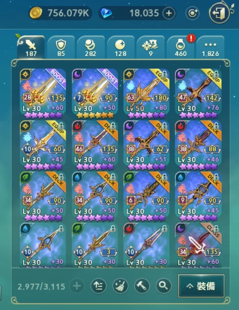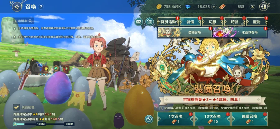 一手帳號,從開服玩到現在,基本上所有活動都有參與。身上資源豐富,很多東西都還沒點(幻獸強化、心之星、召喚券)