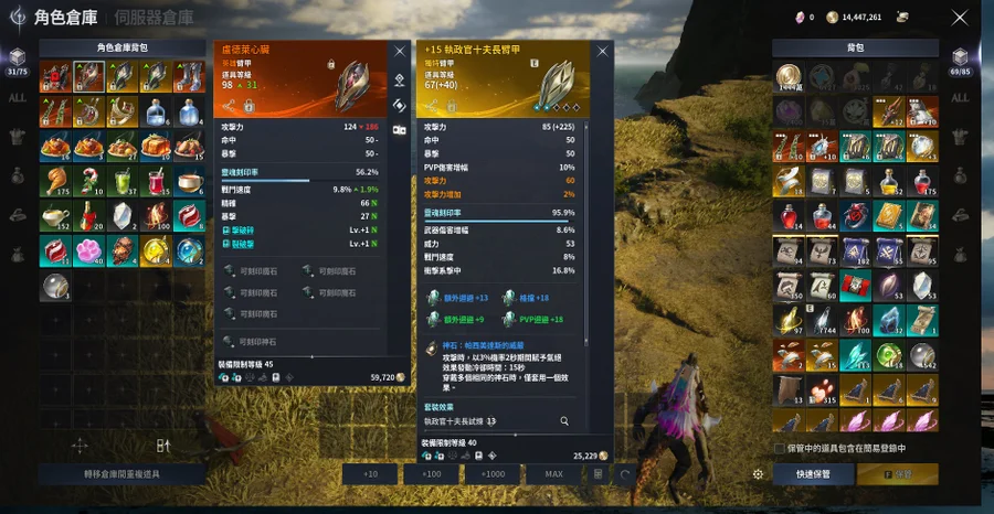 副本3044、全軍裝2925分,裝分沒意義,直接看實心詳細素質(商店基本卷軸+疾風),pvp以及後續副本沒命中都打不到 高鐵壁/強擊; 要墊裝分用角岩窟、新複本金裝也可達3300以上,別被騙了