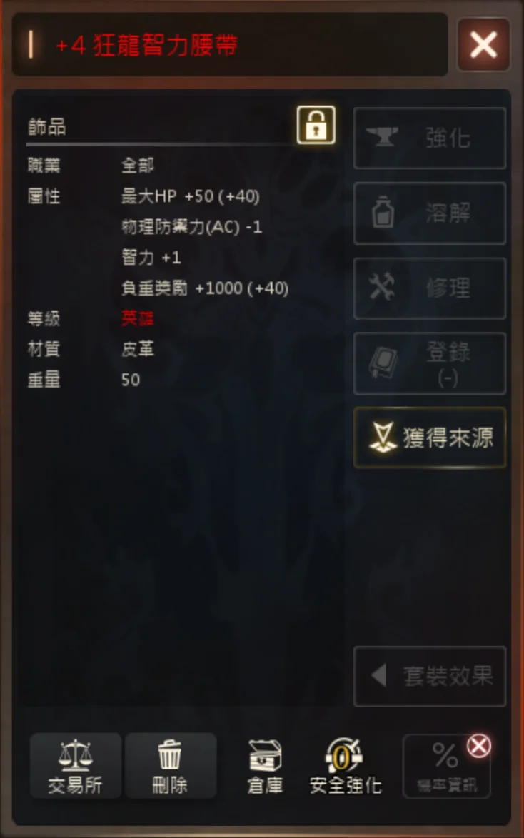 +4 狂龍智力腰帶 2500