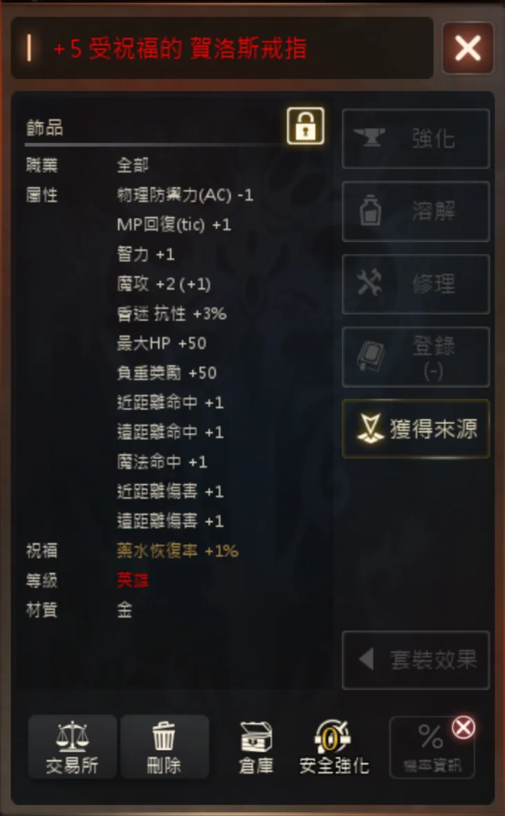 +5 祝赫洛斯戒指 3250