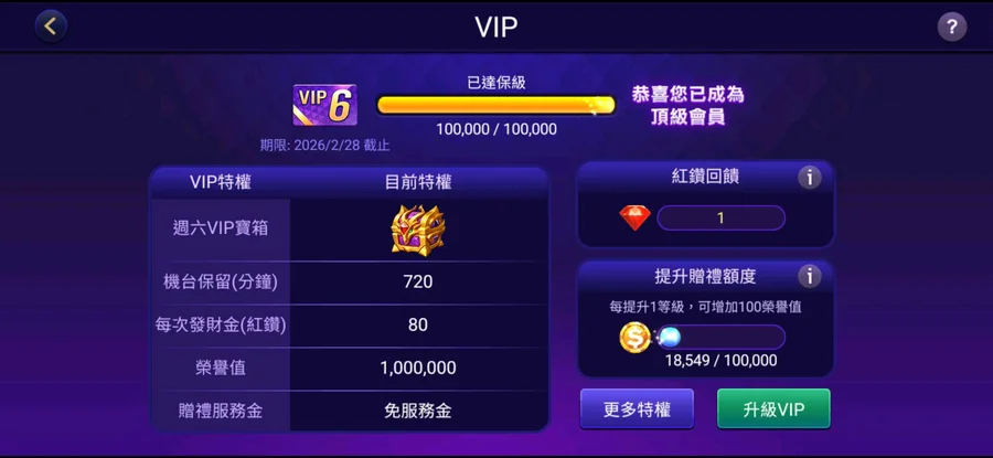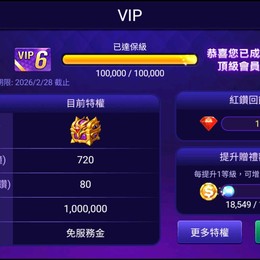 VIP6滿級,限期到二月底,內無紅鑽,賣空帳