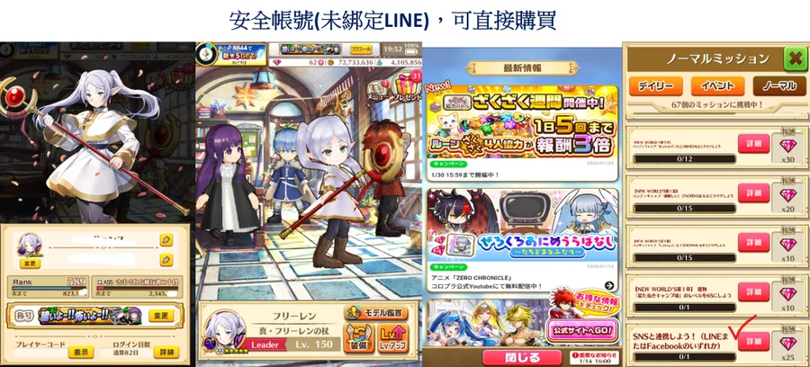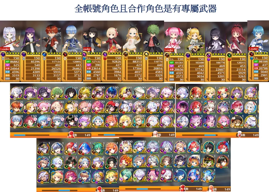6: 角色(莉可麗絲、葬送的芙莉蓮、魔法少女小圓角色)是稀有的掃圖角色,帳號遊戲體驗會相當好,大範圍技能和特殊輔助技能都是目前抽不到的。