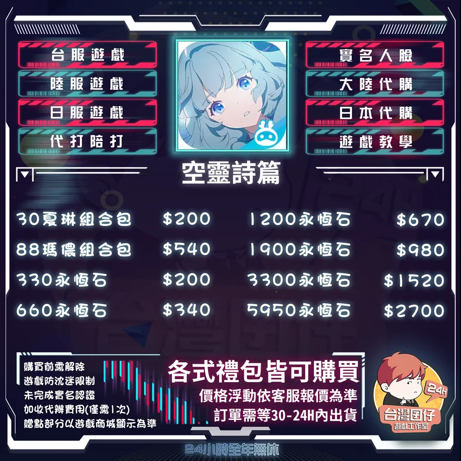 6️台灣囝仔台陸手遊代儲純粹為協助代儲服務,僅收取服務費,無賺取額外差價。