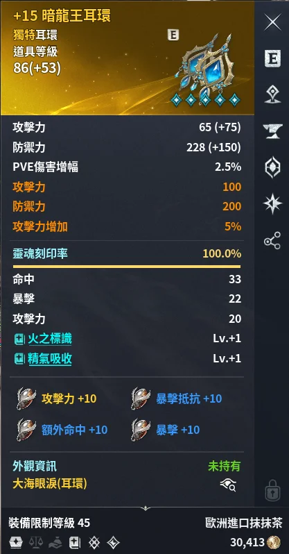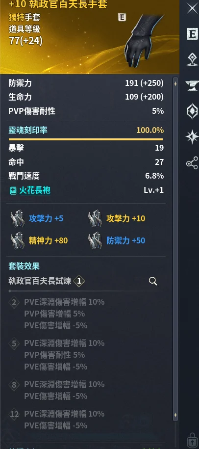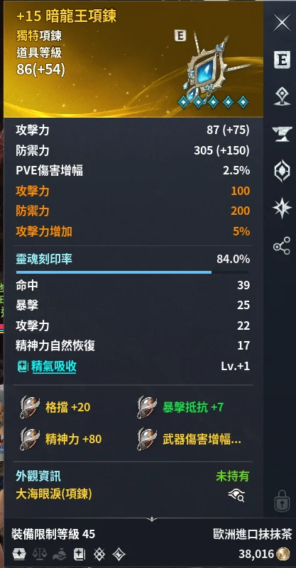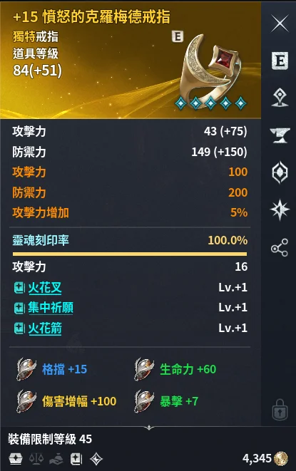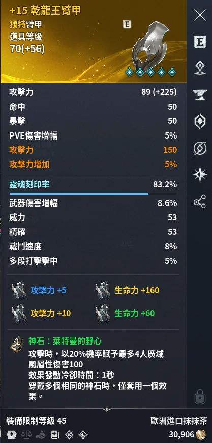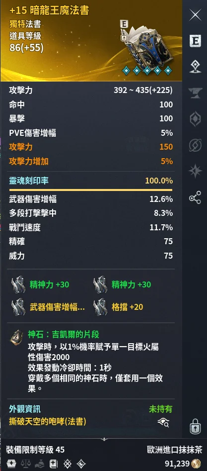 👉面板攻擊力高達6047(火花長袍更新後),開啟集中祈願後高達6571👈,所有防具的詞條和傷害相關的全部都洗好了、烙印雙20等