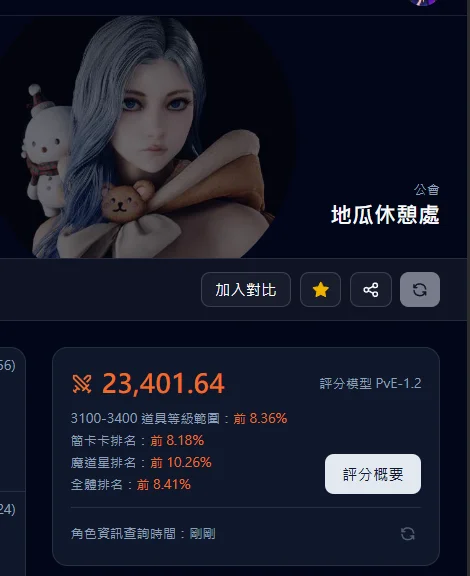 角色強度不光是看裝備分數,包含了許多細節,本帳號對於這方面細節全部都有琢磨,所以機體💥強度保證很高。(聖域常駐DPS榜首)
