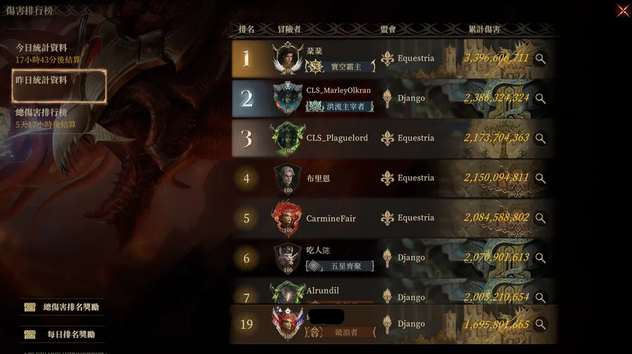 全域金鷲勇士2、團隊銀獅1、大角鬥場第7名