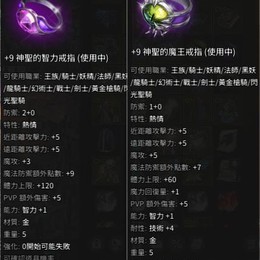 +9 神聖的魔王戒指/+9 神聖的智力戒指/+7 蕾雅戒指
