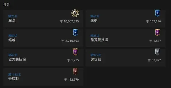 小號:2577殺星 2537魔道 2580精靈 2460治癒 都可刷普通火神 大概都有4w賽季幣