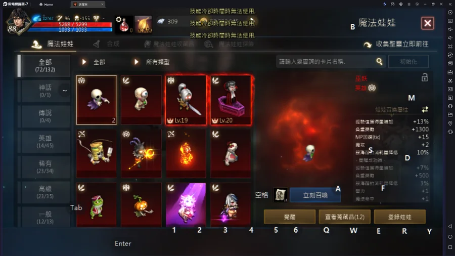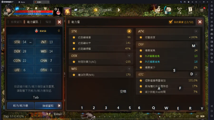 本尊職業:魔劍士 88等32%,其餘請看圖