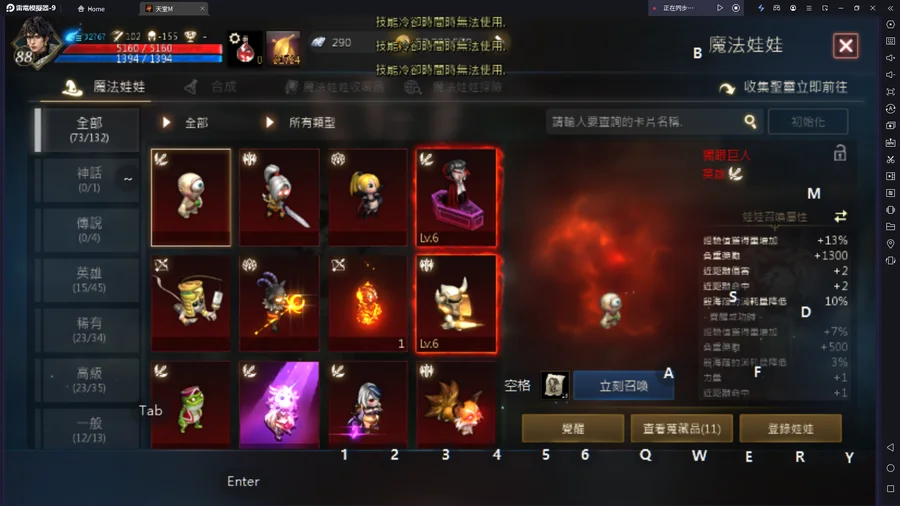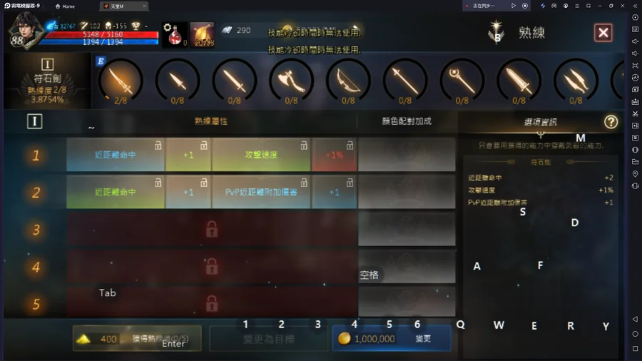 本尊職業:魔劍士 88等26%,其餘請看圖