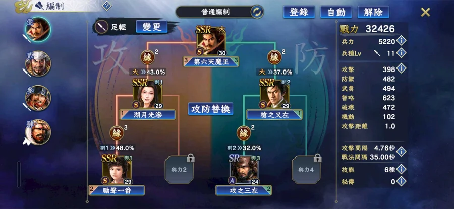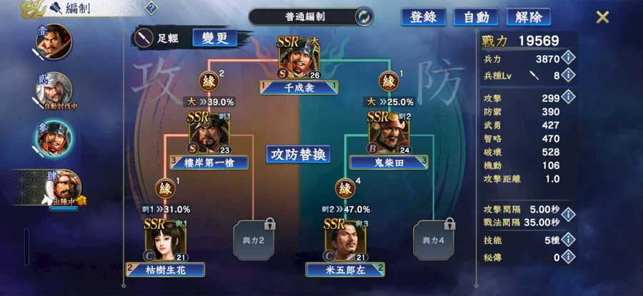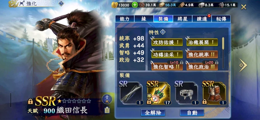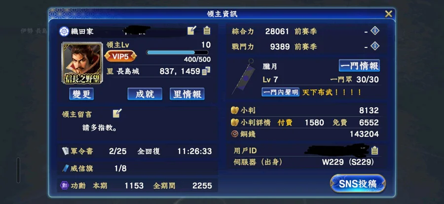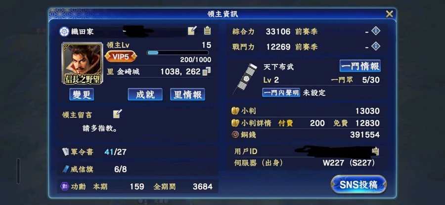 227晚進場,沒有跟到週年UR阿市跟UR羽柴,(有SSR羽柴)跟UR歸蝶,沒有上杉,邊抽邊等自選,但有把UR立花抽出來也有專武,永久通行證有,隊伍尚可(3槍1騎),目前就是等合併。