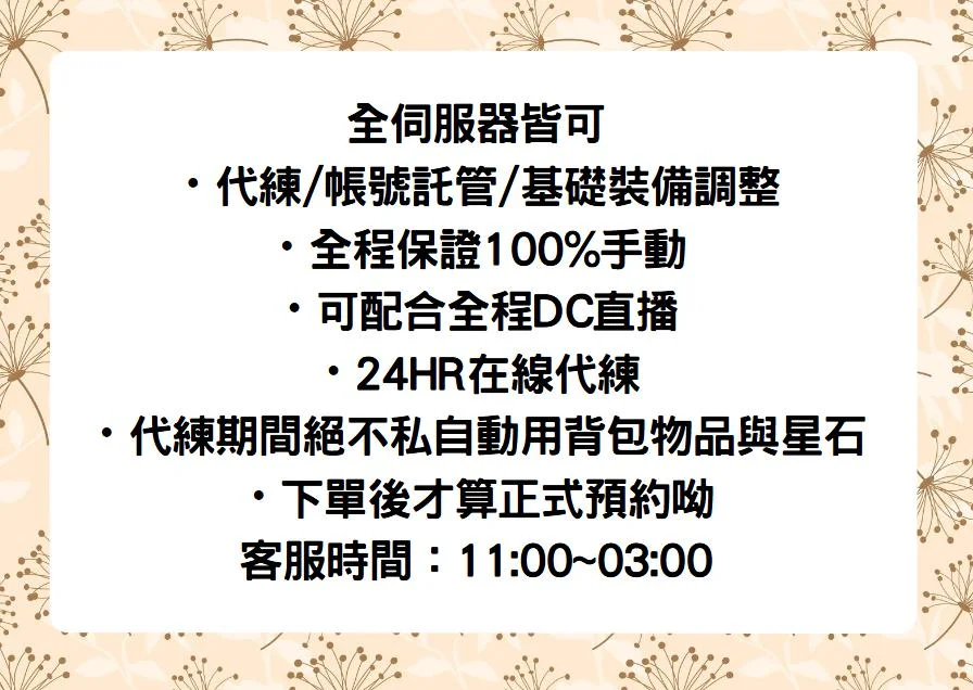 24hr專人手動代練 各伺服器皆可